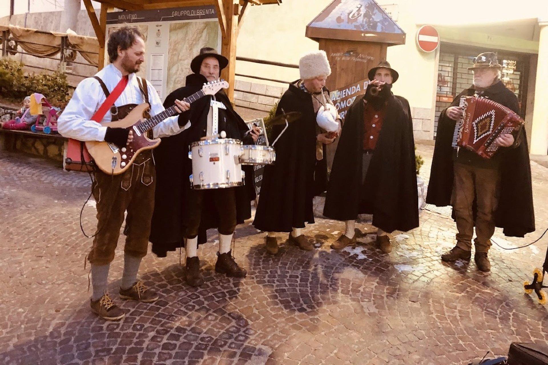 Blasinstrumente, Dudelsack, Ziehharmonika und Schlagwerk: Die typischen Klänge des Trentiner-Tiroler Weihnachtsfestes kommen nach Molveno.