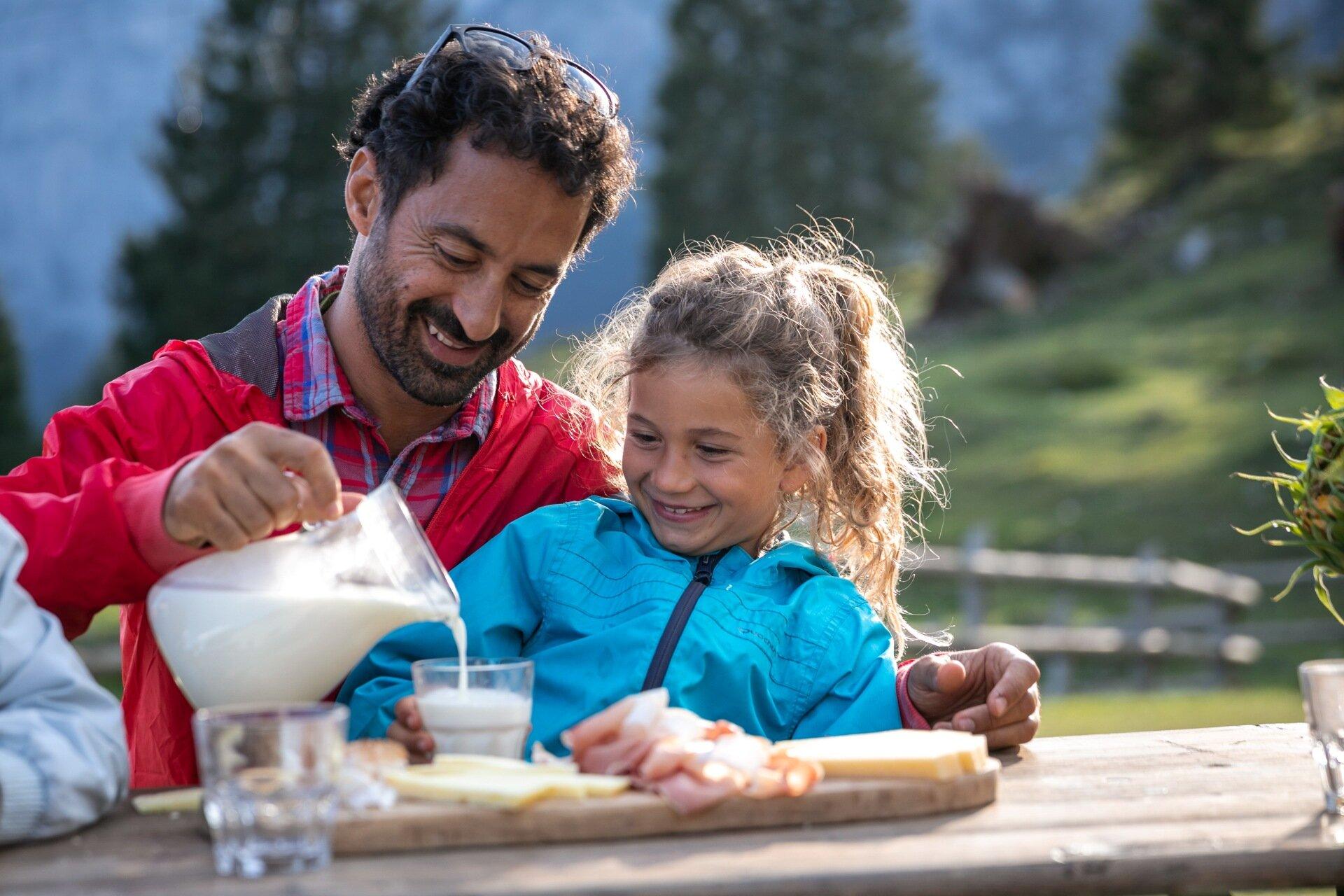 Mentre il sole scende dietro le cime, vi accogliamo in malga per un momento di quiete. Assaggiate i formaggi prodotti nel nostro caseificio, accompagnati da salumi locali, composte biologiche e dai succhi e sciroppi che ricaviamo dai nostri frutti.